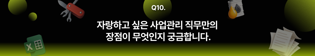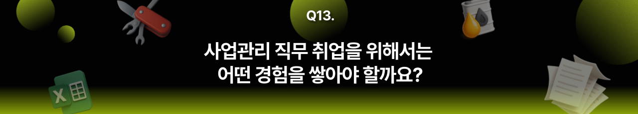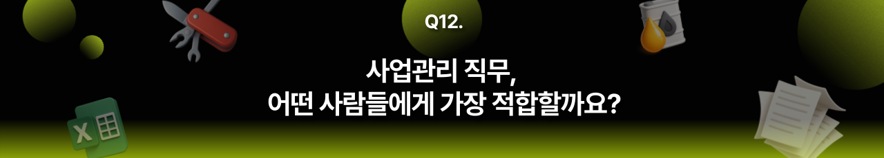 여러분은 사업관리 직무라 하면 어떤 것이 떠오르시나요? 말 그대로 사업을 관리하는 프로젝트 매니저의 이미지, 혹은 다양한 업무를 소화해 내는 만능 엔터테이너의 이미지가 떠오르곤 합니다. 이렇듯 사업관리 직무는 다방면의 업무를 수행하며 사업 전반에 개입하기 때문에, 사업 운영에 있어 없어서는 안 될, 핵심적인 역할을 합니다.
