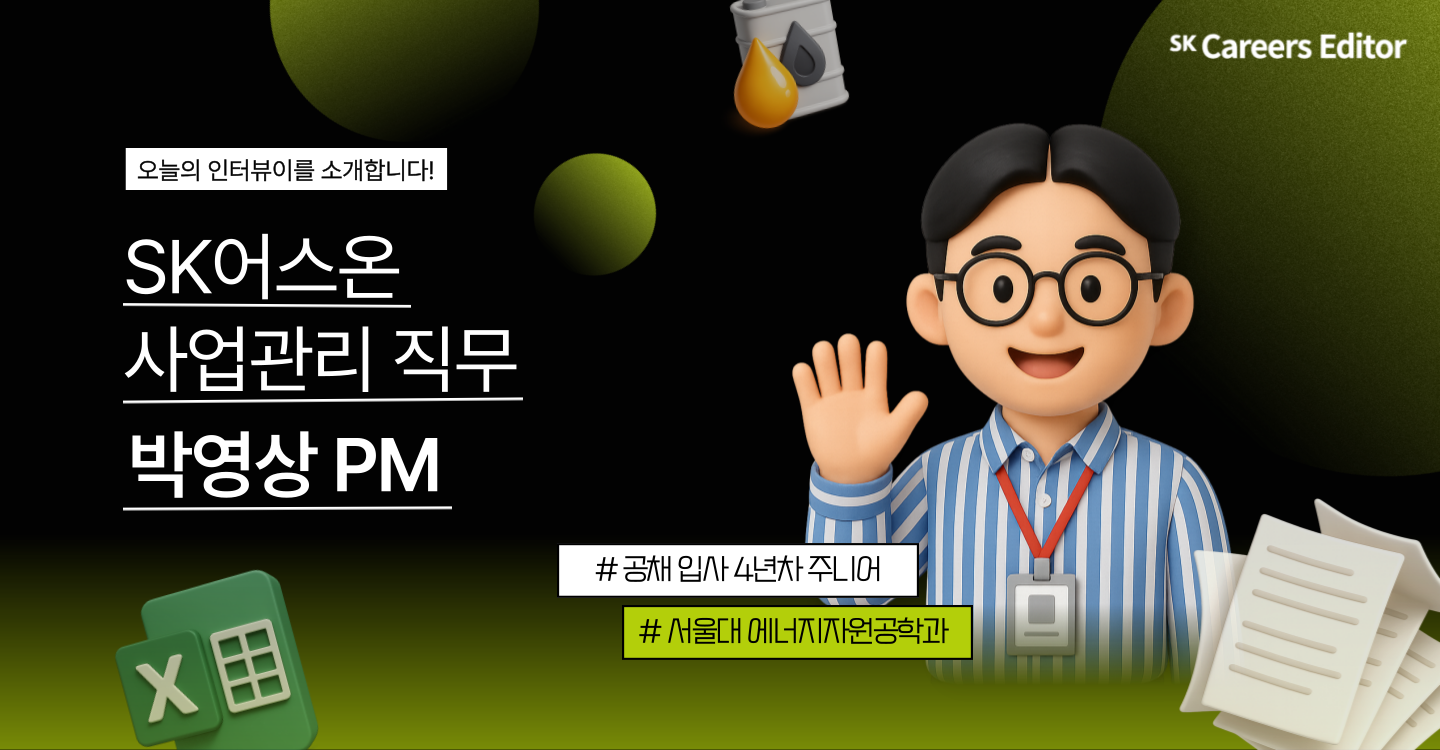 특히 SK어스온의 사업관리 직무는 석유개발 사업 전반과 관련된 사업관리 업무를 수행한다는 점에서 독특한 매력을 지니는데요, SK어스온 사업관리팀 박영상 PM님과의 인터뷰를 통해 그 매력을 자세히 파헤쳐보고자 합니다. 아래 기사를 통해 함께 살펴 보실까요? 🔎