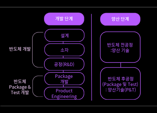 반도체 생산은 크게 ‘개발 단계’와 ‘양산 단계’ 두 가지로 나눌 수 있는데요, 이렇게 나눠서 보면 각 직무가 어떤 역할을 하는지 훨씬 더 쉽게 이해할 수 있습니다.