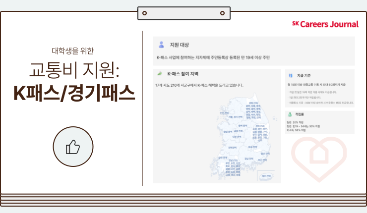 교통비 역시 많은 대학생들이 매달 체감하는 대표적인 고정 지출 항목입니다. 통학하는 학생은 물론, 자취를 하며 등하교를 반복하는 이들에게는 한 달 교통비만 해도 꽤 부담스러운 수준입니다. 이때 활용할 수 있는 방법이 바로 ‘K패스’와 ‘경기패스’와 같은 교통비 환급형 카드입니다.