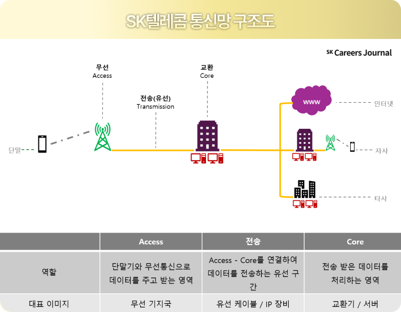 은비님:Infra직군은Access,유선/IP, Core,설비이렇게 네 가지 영역으로 나뉘어요.