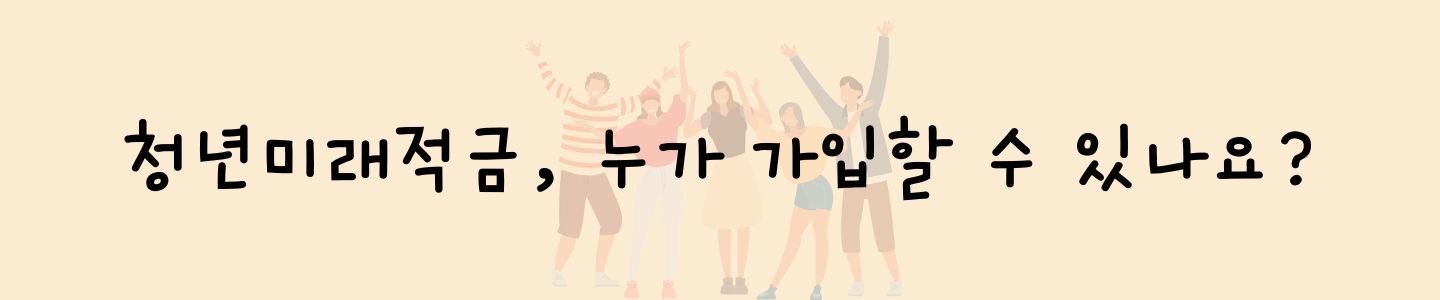 청년미래적금은 대한민국에 거주하는 만 19세에서 34세 청년이면 가입이 가능합니다. 다만 소득 요건이 있습니다. 연 소득 6천만 원 이하인 청년 또는 연 매출 3억 원 이하인 자영업 청년도 가입할 수 있어, 보다 넓은 범위의 청년층을 포괄합니다. 이는 청년도약계좌의 가입 대상을 확대하여 더 많은 청년에게 자산 형성 기회를 주려는 모습이 보입니다.