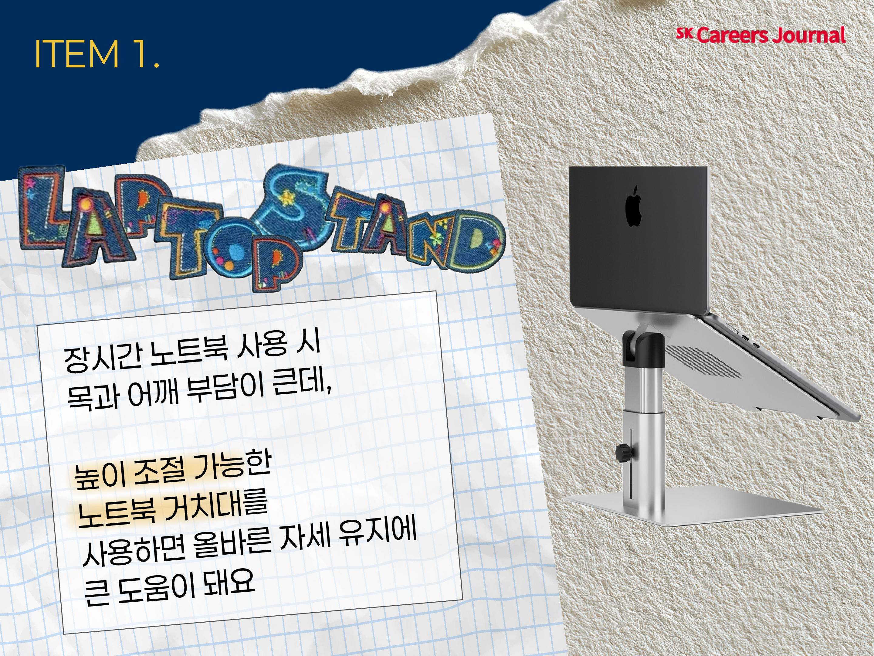 장시간 노트북 사용 시 목과 어깨 부담이 큰데, 높이 조절 가능한 노트북 거치대를 사용하면 올바른 자세 유지에 큰 도움이 돼요. 특히 과제와 프로젝트가 많아 집중력이 중요한 때, 편안한 자세는 공부 효율을 높여줍니다. 💻