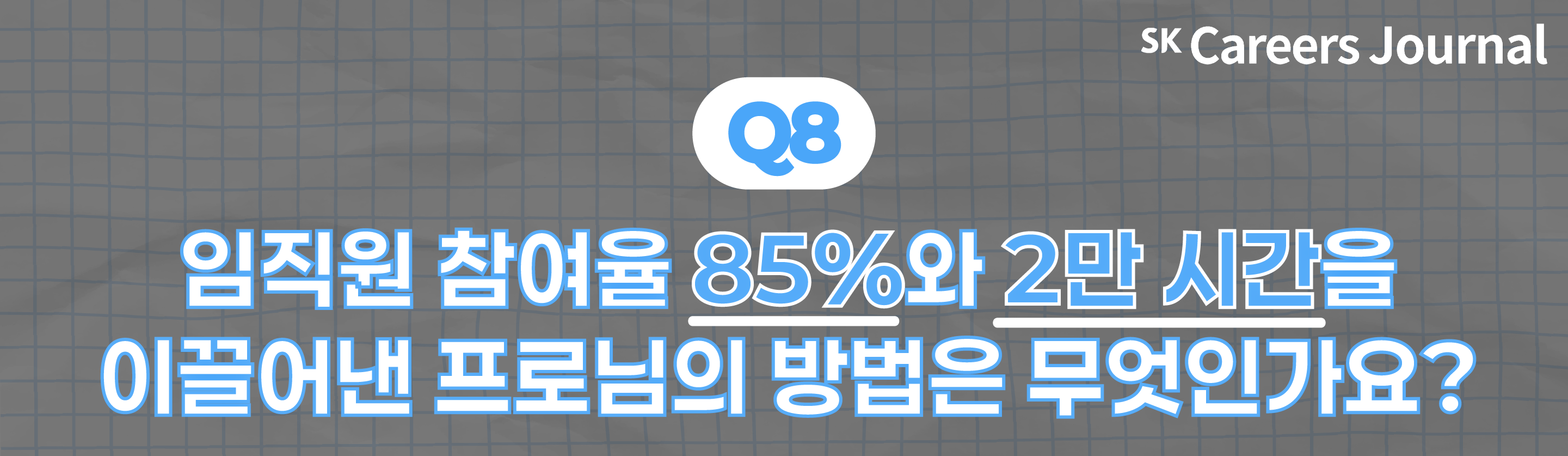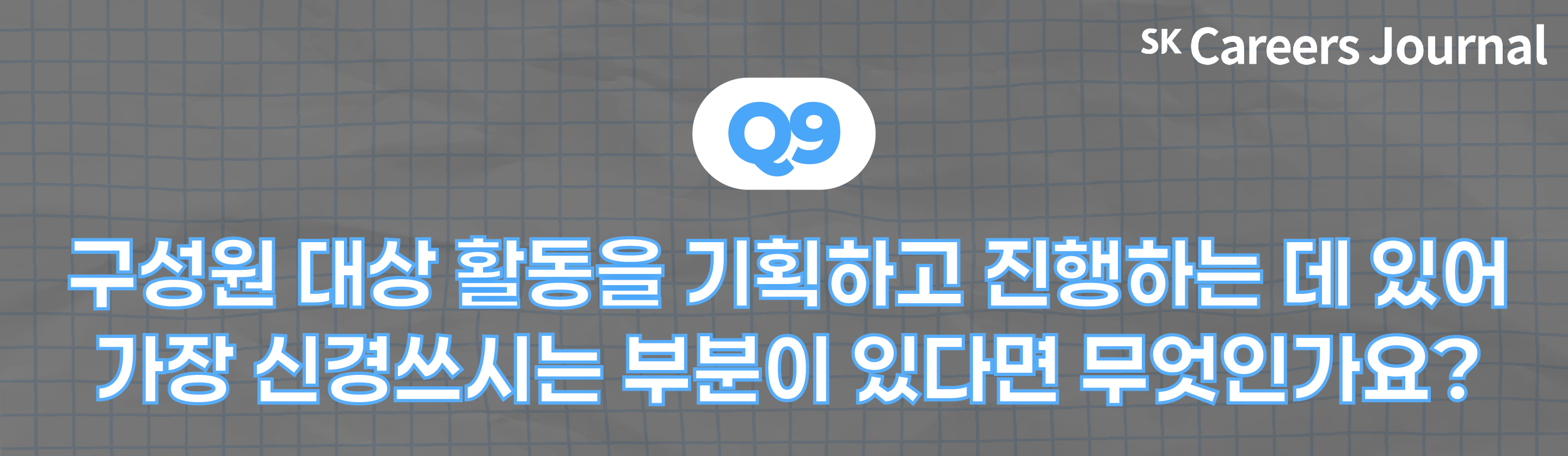 제가 하는 업무는 전사 대상으로 하는 일이라, 기획할 때 고려해야 할 변수가 정말 많아요. 저희 회사는 원래 SK건설이어서 전국과 해외 건설 현장이 모두 포함되어 있거든요. 그래서 프로그램을 설계할 때는 구성원들이 불편하지 않도록 세심하게 신경 써야 하고, 다양한 리스크도 미리 점검해야 합니다.