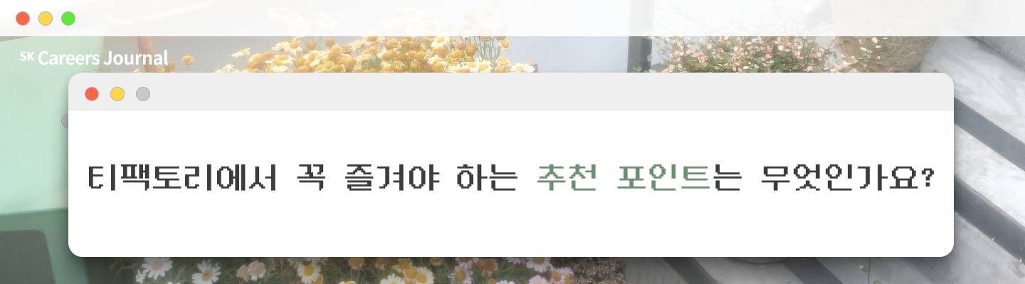누리님: 제가 티팩토리의 마케팅 담당자이기도 한데요 티팩토리 성수라고 딱 했을 때 사람들이 아 거기 성수 가면 꼭 가봐야 하는 곳 성수 가면 제일 재미있는 뭐 뭐 할 거 없을 때 성수에서 제일 먼저 생각나는 곳 이렇게 됐으면 하는 게 제일 큰 바람이고요. 그리고 플래그십 스토어들이 브랜드마다 다 각자 브랜드 메시지를 전달하기 위해서 기획을 많이 하고 있는데 그래도 플래그십 스토어 중에 티팩토리 하면은 되게 SK텔레콤이 제일 잘하고 있는 플래그십 스토어라는 인식이 생겼으면 좋겠습니다.
