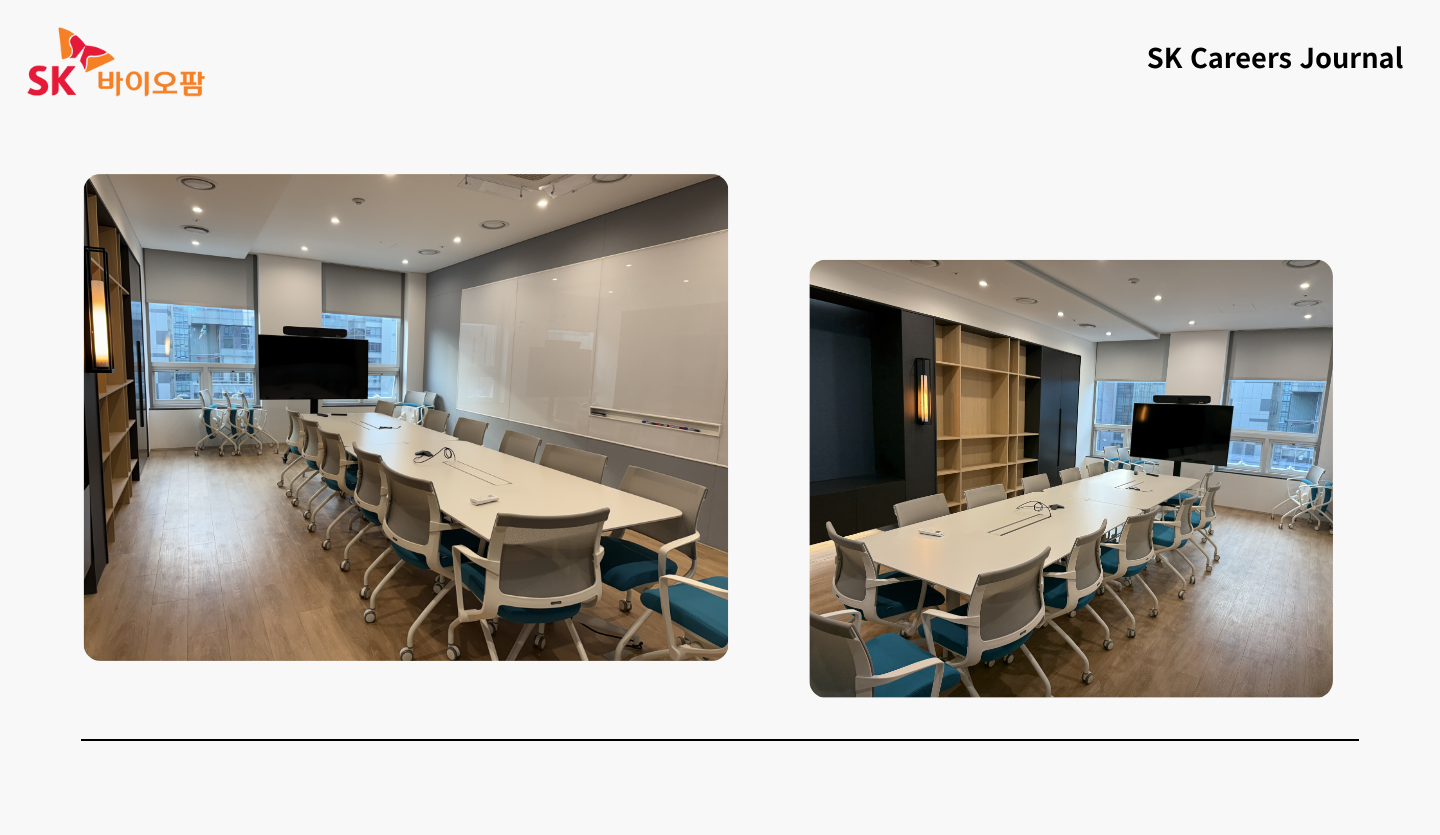 깔끔한 오피스와 체계적인 시설 그리고 복지 공간까지 SK바이오팜 오피스를 둘러보며 느낀 건 단순히 좋은 회사 이상의 무언가였습니다. 특히 실험실에서 만난 연구원분의 한마디가 오래 마음에 남습니다. “제가 참여했던 약이 누군가의 삶을 더 나아지게 한다는 것이 자부심이 된다.” 그 말 속에는 SK바이오팜이 추구하는 진짜 행복이 담겨있던 것 같습니다. 이곳의 행복은 단순히 근무 환경이나 복지에서 끝나지 않고 환자의 삶을 바꾸는 보람으로 이어지고 있었습니다.