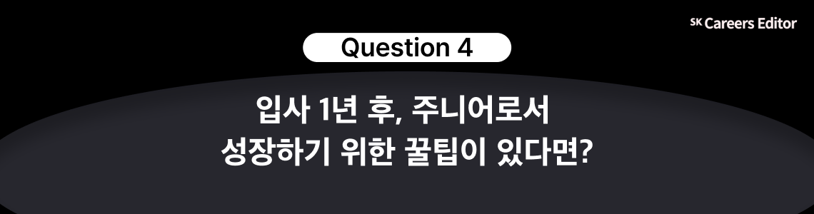 빨리 한몫을 하는 사람이 되고 싶은 것이 모든 신입 구성원들의 마음이지만, 조직이나 업무 특성에 따라 실현이 어려운 경우도 많을 것 같은데요. 업무적으로 Output이 있어 한몫을 하는 사람이 되는 것도 물론 중요하지만, 업무적으로 혹은 업무 외적으로 나에게 의미가 있었던 명확한 Keyword가 있는지 생각해보고, 그를 통해 회사 생활의 자신감을 갖게 된 모습이 가장 이상적인 성장의 모습이라고 생각합니다.