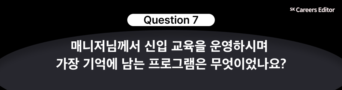🎙️윤연주 매니저님: 가장 뿌듯한 순간은 제가 정성껏 준비한 교육을 신입사원들이 마친 후, ‘정말 유익했다, 많은 도움이 되었다’는 피드백을 받을 때입니다. 교육 기획 단계에서부터 많은 고민과 노력이 들어가지만, 그 결과가 신입사원들의 성장과 만족으로 이어질 때 가장 큰 보람을 느낍니다.