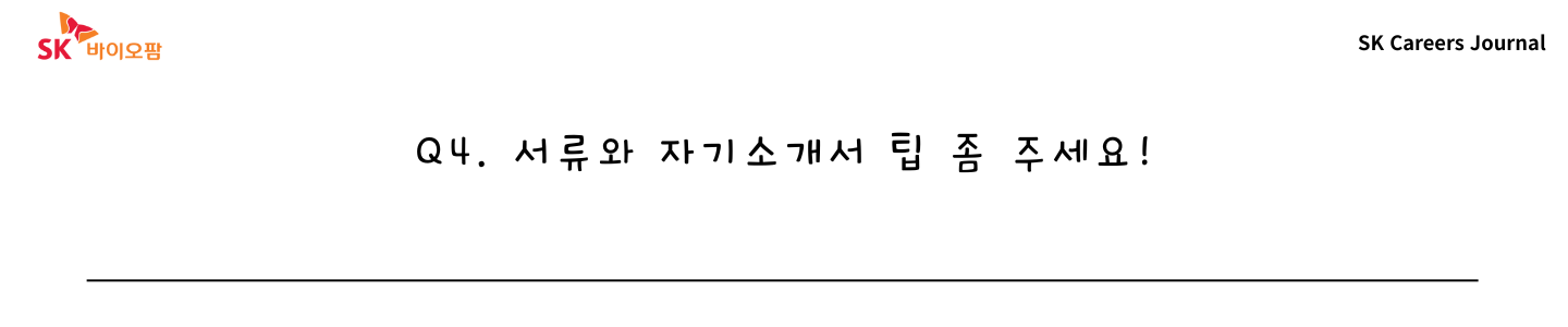 서류에서 가장 중요한 건 지원자만의 스토리입니다. 인사담당자 입장에서 이 사람이 우리 회사와 얼마나 Fit할지, 직무 연관성이 얼마나 높을지를 중요하게 판단합니다.