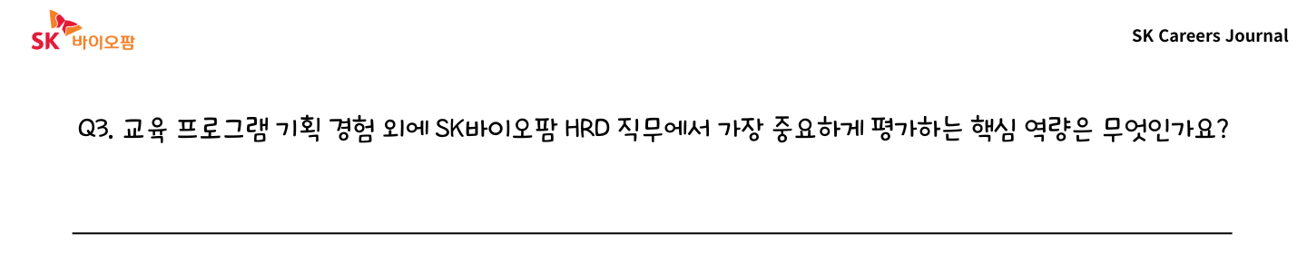 이번 인터뷰를 통해 지원자들이 HRD 직무의 운영적 중요성을 이해하고 성공적으로 SK바이오팜에 합류할 수 있는 구체적인 가이드를 얻길 바랍니다.