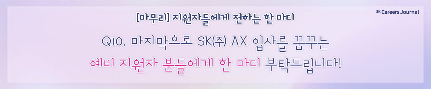 Q10. 마지막으로 SK㈜ AX 입사를 꿈꾸는 예비 지원자 분들께 한 마디 부탁드립니다!