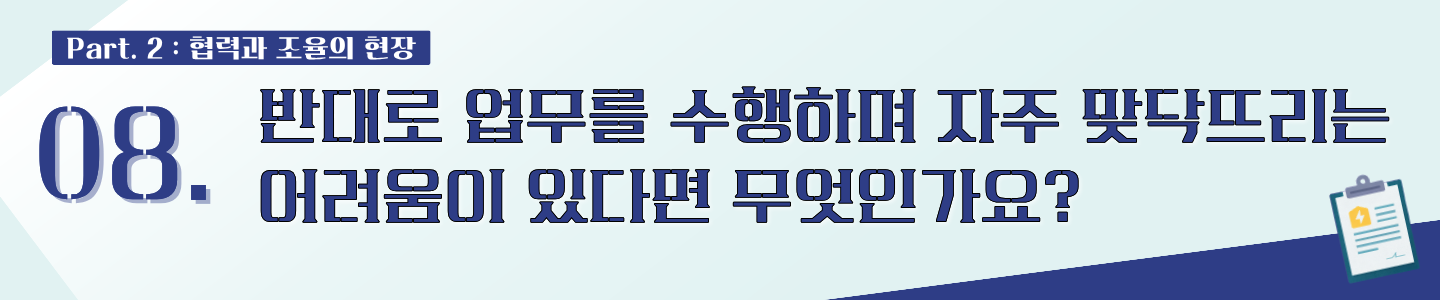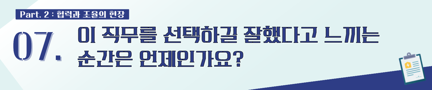 지금까지 대외협력2팀과 함께 전력사업 뒤에서 사업의 길을 여는 역할에 대해 이야기 나눠보았습니다.