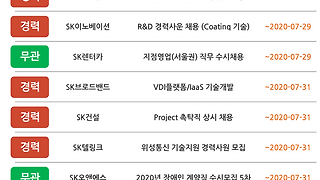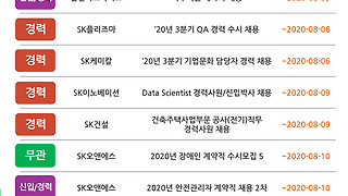 SK채용/채용 소식 썸네일형 리스트형 SK그룹 8월 2주차 채용 소식 SK머티리얼즈 기업문화 소개 특집: SK FAM CEO 행복 Live 다시보기SK케미칼 직무 인터뷰: MA의 직무의 모든 것 더보기 SK그룹 8월 1주차 채용 소식 현직자가 말해주는 SK이노베이션 상반기 채용 직무SK건설 유튜브 컨텐츠 TOP 3! 더보기 SK그룹 7월 5주차 채용 소식 현직자가 말해주는 SK이노베이션 상반기 채용 직무SK건설 유튜브 컨텐츠 TOP 3! 더보기 SK그룹 7월 4주차 채용 소식 현직자가 말해주는 SK이노베이션 상반기 채용 직무SK건설 유튜브 컨텐츠 TOP 3! 더보기 SK그룹 7월 3주차 채용 소식 SK텔레콤과 나눔을 실천해요SK머티리얼즈 채용담당자와의 솔직담백 TALK 더보기 SK그룹 7월 2주차 채용 소식 의약품의 부작용을 철저히 감시한다! 약물감시 A to ZSK가스, LPG 마케팅 직무탐구 2편 더보기 SK그룹 7월 1주차 채용 소식 SK이노베이션 INSIDE: 배터리로 취업하자! 더보기 SK그룹 6월 4주차 채용 소식 SK이노베이션 INSIDE: 배터리로 취업하자!SK건설 유튜브 컨텐츠 TOP 3! 더보기 이전 1 ··· 34 35 36 37 38 39 40 ··· 82 다음