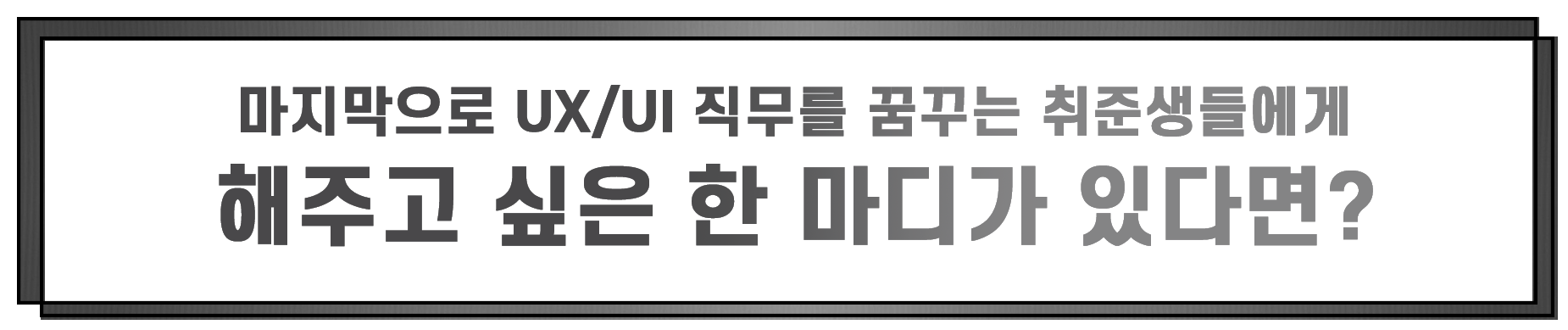 제가 고민했던 부분을 여러분에게 말씀드리고 싶어요. ‘왜 UX 디자이너가 되고 싶고, 어떤 UX 디자이너가 되고 싶은지’ 고민해보시길 바랍니다. 요즘은 마케팅, 개발 직군, 기획자분들에게도 UX 관련 소양이나 마인드셋 센스를 원하기 때문에 자신은 UX디자이너로서 다른 직무와는 차별화되는 어떤 전문성을 가질 수 있는지 생각하셔야 합니다.