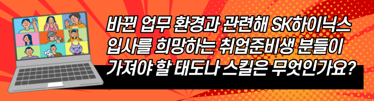 안녕하세요. SK하이닉스의 HR 커뮤니케이션 부서의 최창현TL이라고 합니다!