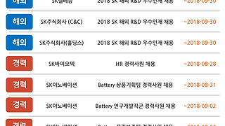 채용 Live On 썸네일형 리스트형 SK그룹 7월 1주차 채용 소식 더보기 SK그룹 10월 5주차 채용 소식 내 ESS 속에 저장★ ESS 에너지 저장 시스템 SK케미칼 백신사업부의 새로운 비상! "SK바이오사이언스 출범" 더보기 SK그룹 8월 5주차 채용 소식 혁신의 ICON, Deep-CHANGE 2.0 in SK이노베이션 직무 IN, Inno(이노)人 – Trading 비즈니스 직무SK텔레콤 속 세계여행, 글로벌 인턴을 만나다 더보기 이전 1 다음