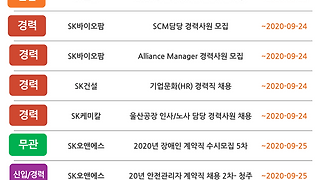 SK경력 썸네일형 리스트형 SK그룹 채용 1월 5주차 더보기 SK그룹 채용 12월 5주차 더보기 SK그룹 채용 9월 4주차 2020 하반기 SK 신입 채용 SK건설의 새로운 시작, 조직 변화에 대한 이야기 들어볼래? 더보기 SK그룹 채용 9월 3주차 2020 하반기 SK 신입 채용 더보기 [2020 하반기 SK(주) C&C 무.물.백.답] 채용 꿀팁 콕 찝어드립니다! [2020 하반기 SK(주) C&C 무.물.백.답] 채용 꿀팁 콕 찝어드립니다! SK Careers Editor 2020 SK Careers Fair : SK주식회사 C&C 무.물.백.답✍ SK주식회사 C&C 채용 꿀팁, 본격 스포일러! 사이다 백만개👏 궁금증 시~원하게 풀고 가세요 📕 SK주식회사 C&C 채용안내 ■ 모집분야 : 신입 ■ 모집인원 : 00명 ■ 모집직무 : 1) Software Engineering 2) Data Analytics/Engineering 3) Cloud/Infra Engineering ✅ 2020 하반기 SK 신입 채용 안내 - 접수기간 : 2020년 9월 14일(월) ~ 9월 25일(금) 24:00 - 모집회사 : 총 6개사 / SK주식회사 C&C, SK이노베이션, SK.. 더보기 SK그룹 7월 3주차 채용 소식 SK텔레콤과 나눔을 실천해요SK머티리얼즈 채용담당자와의 솔직담백 TALK 더보기 SK그룹 5월 4주차 채용 소식 SK건설의 새로운 시작, 조직 변화에 대한 이야기 들어볼래?SKC에 동박꽃 필무렵 더보기 SK그룹 5월 2주차 채용 소식 SK네트웍스가 물류까지?!SK브로드밴드인 탄생기, 슼피플 : 인재육성팀을 만나다 더보기 이전 1 2 3 4 5 다음